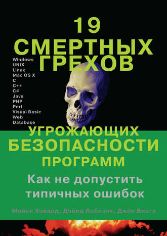 Эта книга необходима всем разработчикам программного обеспечения, независимо от платформы, языка или вида приложений. В ней рассмотрены 19 грехов, угрожающих безопасности программ, и показано, как от них избавиться. Рассмотрены уязвимости на языках C/C++, C#, Java, Visual Basic, Visual Basic.NET, Perl, Python в операционных системах Windows, Unix, Linux, Mac OS, Novell Netware. Авторы издания, Майкл Ховард и Дэвид Лебланк, обучают программистов, как писать безопасный код в компании Microsoft. На различных примерах продемонстрированы как сами ошибки, так и способы их исправления и защиты от них. Если вы программист, то вам просто необходимо прочесть эту книгу.