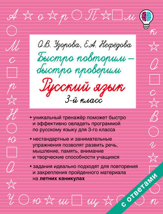 Книга автора О. В. Узорова. Относится к жанрам: для младших классов, задания по русскому языку, начальная школа, правила русского языка. Объем: 51 стр.. Дата написания: 2017. Возрастное ограничение: 6+. ...