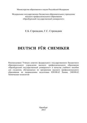 В учебном пособии под названием «Deutsch für Chemiker» (Немецкий для химиков) рассматривается методически подобранный и организованный немецкоязычный и русскоязычный материал науки «Химия» для изучения немецкого языка студентами по следующим направлениям подготовки: 020100.62 Химия, 240100.62 Химическая технология. В содержание данного пособия входят учебные аутентичные и адаптированные тексты для устного и письменного перевода, каждый из которых сопровождается комплексом упражнений по формированию и развитию языковой и речевой компетенций в устной и письменной немецкоязычной речи. Пособие снабжено грамматическим справочником, комплектом ролевых игр, текстами для дополнительного чтения и словарём.