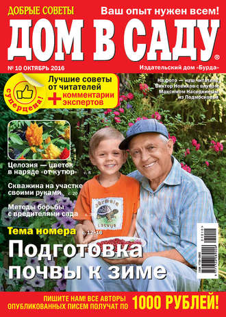 «Добрые советы. Дом в саду» – ежемесячный интерактивный журнал для всех, кому интересно садоводство, огородничество, строительство и ландшафтные работы. Основная часть журнала – письма читателей, в которых они делятся своим опытом выращивания декоративных, садовых и овощных культур, обустройства дачного участка, защиты растений от болезней и вредителей, строительства и украшения дома. В каждом номере журнала «Добрые советы. Дом в саду» – фотоальбом от читателей и портреты лучших цветов для домашней коллекции! Советы по использованию лекарственных растений, рецепты дачных блюд, вопросы юристу, забавные истории. Все авторы опубликованных писем получают по 1000 рублей.