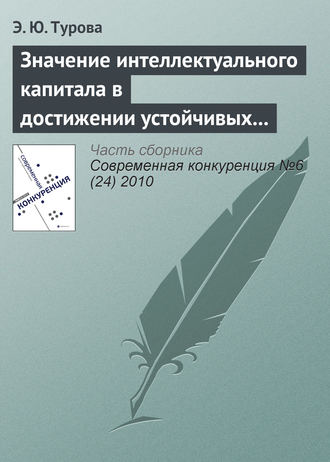 Книга автора Э. Ю. Турова. Относится к жанрам: интеллектуальный капитал, капитал, конкурентные преимущества, конкурентоспособность бизнеса, экономика знаний. Объем: 9 стр.. Дата написания: 2010. Воз ...