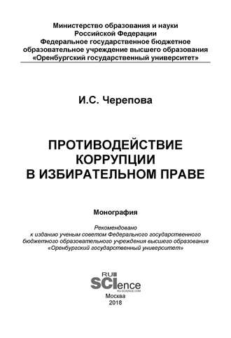 Книга автора И. С. Черепова. Относится к жанрам: избирательное право, коррупция. Объем: 126 стр.. Дата написания: 2018. Возрастное ограничение: 0+. Вы можете в один клик скачать книгу ‘Противодействи ...