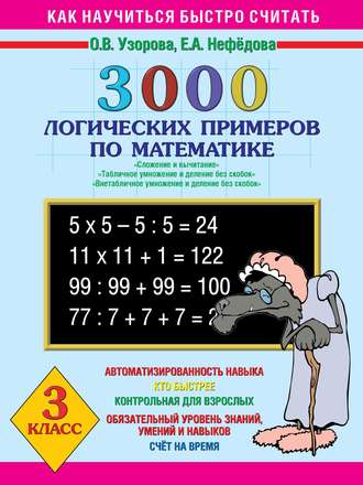 3000 логических примеров по математике. Сложение и вычитание. Табличное умножение и деление без скобок. Внетабличное умножение и деление без скобок. 3 класс