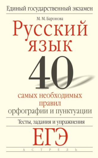 Книга автора М. М. Баронова. Относится к жанрам: единый государственный экзамен (ЕГЭ), задания по русскому языку, подготовка к экзаменам, экзамен по русскому языку. Объем: 418 стр.. Дата написания: 2009 ...