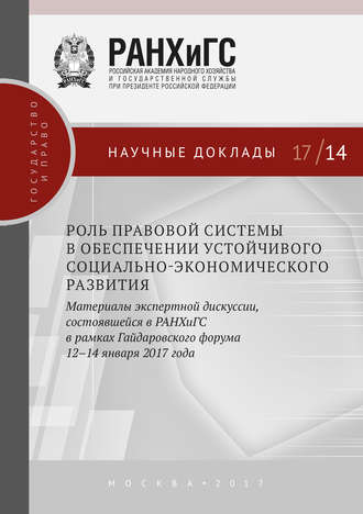 Роль правовой системы в обеспечении устойчивого социально-экономического развития. Материалы экспертной дискуссии, состоявшейся в РАНХиГС в рамках Гайдаровского форума 12–14 января 2017 года