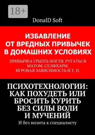 В брошюре описана безопасная пошаговая инструкция избавления от распространённых вредных привычек и деструктивных пристрастий. Способ работает в домашних условиях без силы воли, диет, мучений и визита к специалисту. Вредные привычки заменяются полезными навыками путём простейшей детской медитации. Вся терапия занимает 5—10 минут в день, первые дни занятий с непривычки могут занимать до 15 минут. Внимание! Не подходит для лечения алкоголизма и наркомании.