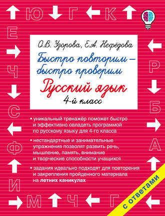 Книга автора О. В. Узорова. Относится к жанрам: детям и родителям, задания по русскому языку, начальная школа, проверка знаний, тесты по русскому языку. Объем: 18 стр.. Дата написания: 2016. Возрастное ...