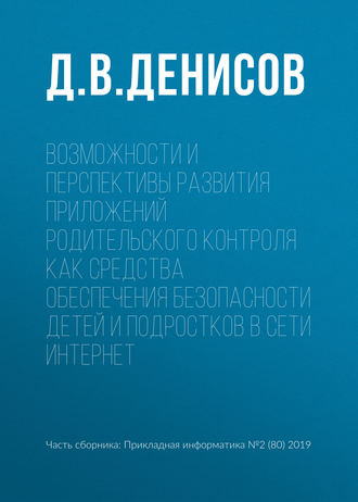 Книга автора Д. В. Денисов. Относится к жанрам: защита информации, разработка приложений, родительский контроль, угроза безопасности. Объем: 16 стр.. Дата написания: 2019. Возрастное ограничение: 0+. В ...
